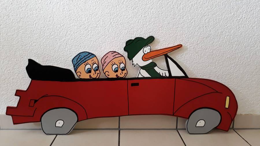 Storchauto mit Zwillingen